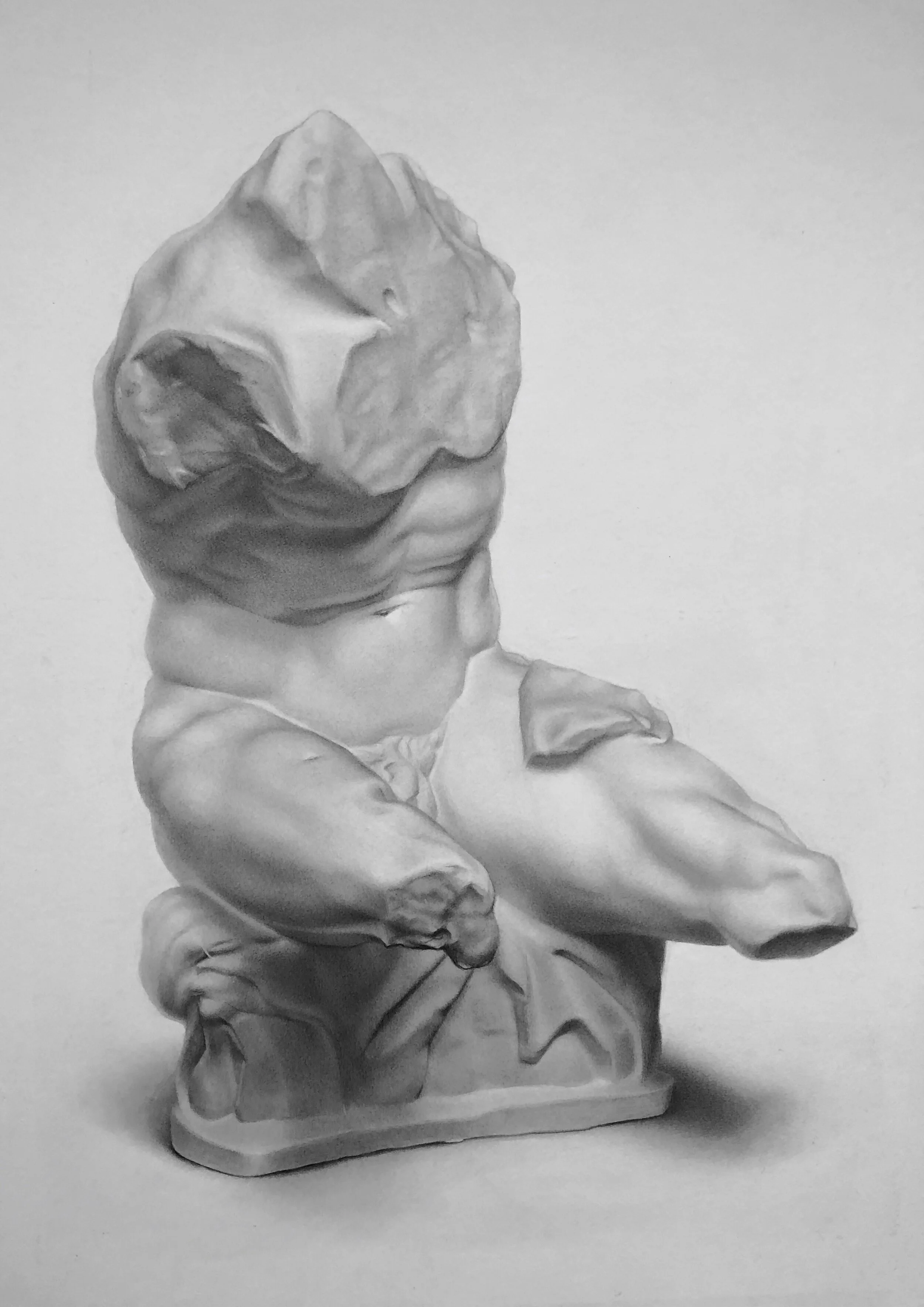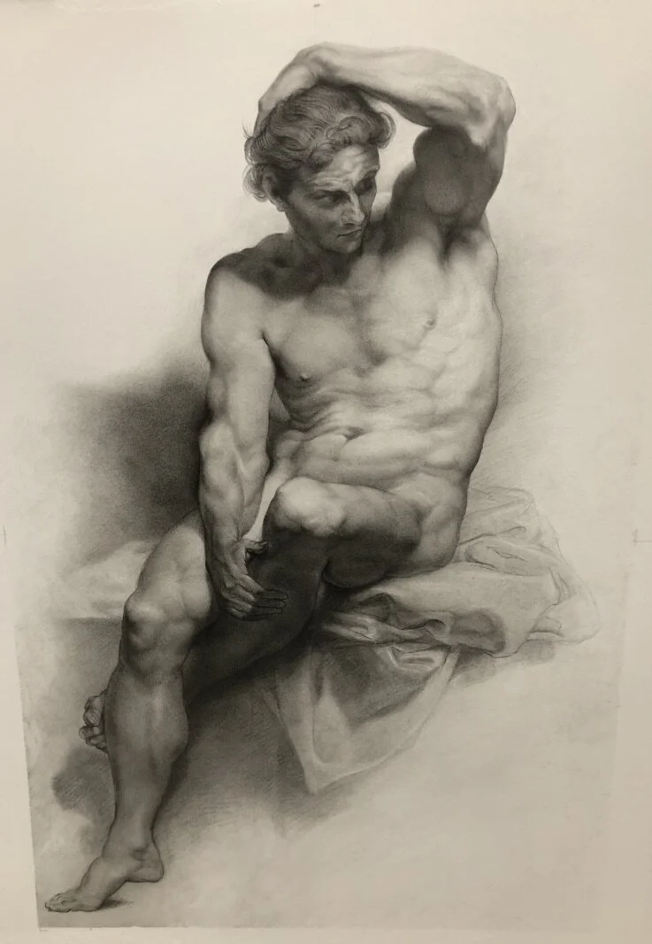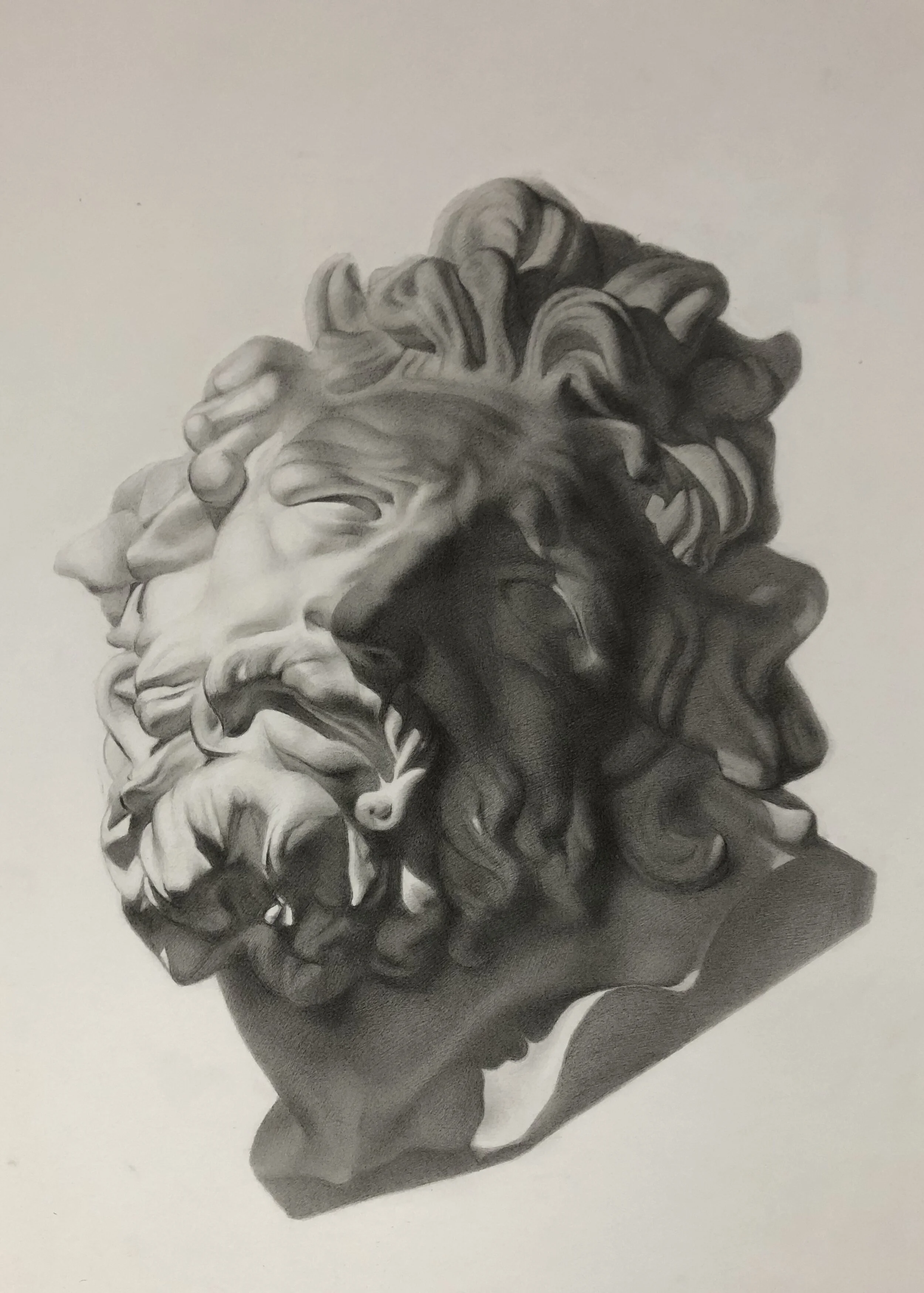 Works on this page are all graphite on Bristol paper and created between 2018 and 2020. 1, 2 & 3 are cast drawings from life set up in the atelier. 4, 5 & 6 are master copies of academic studies. Each of these drawings have taken over 100 hours of dedicated practice.